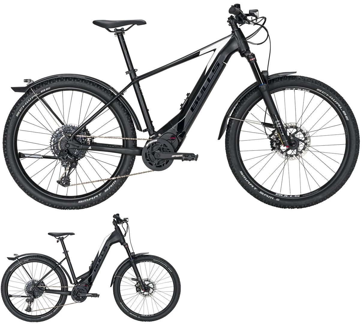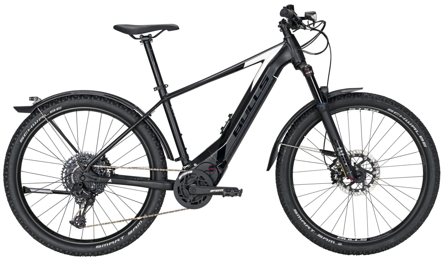 Hydroforming Alu-Rahmen, Bulls Lytro-35 Air-LO Boost Federgabel mit 120mm Federweg, SRAM SX Eagle Schaltwerk, Schalthebel und 11-50 Zahnkranz, Magura MT-5 Disc-Bremsen (203mm MDR-C), Bulls AS-30T Disc Felgen, Brose Mittelmotor Drive-S MAG 250W / bis 90Nm, 555Wh oder 750Wh Akku (Aufpreis), Sport-Display, Smart Sam 2.25 Reifen, SKS Velo Mountain Schutzbleche, 70 Lux LED Lampe, Monkey-Link Halter