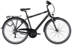6061 Alu-Rahmen, Suntour XCT-JR Federgabel, 21-Gang Shimano Tourney Schaltwerk und Umwerfer, EZ-Fire Schalthebel, Alu Kurbeln, Alu HR-Nabe, Alu Felgen, Tektro V-Bremsen, Downhill-Lenker, Steckbleche, Nabendynamo, 30 Lux LED-Lampe, Standrücklicht, Ständer