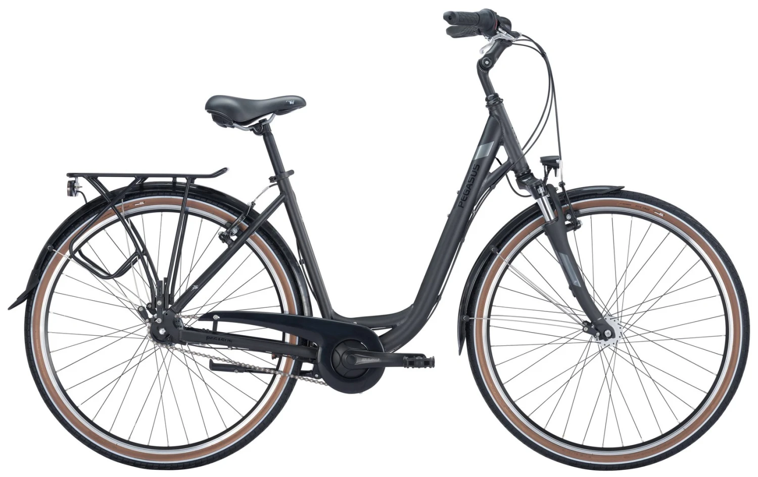 Komfortabel, stilsicher und zuverlässig zugleich – das Piazza 7 ist der ideale Begleiter auf allen täglichen Fahrten. Dafür sorgen eine entspannte Sitzposition, die wartungsarme Shimano Nexus 7-Gang-Nabe mit Rücktritt und die Federgabel.