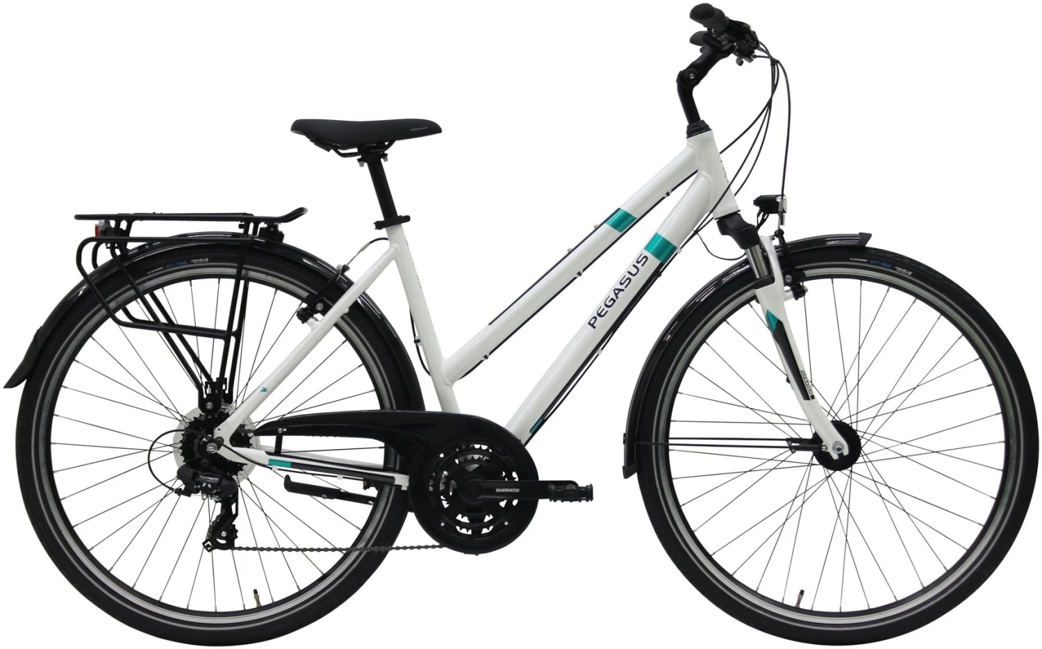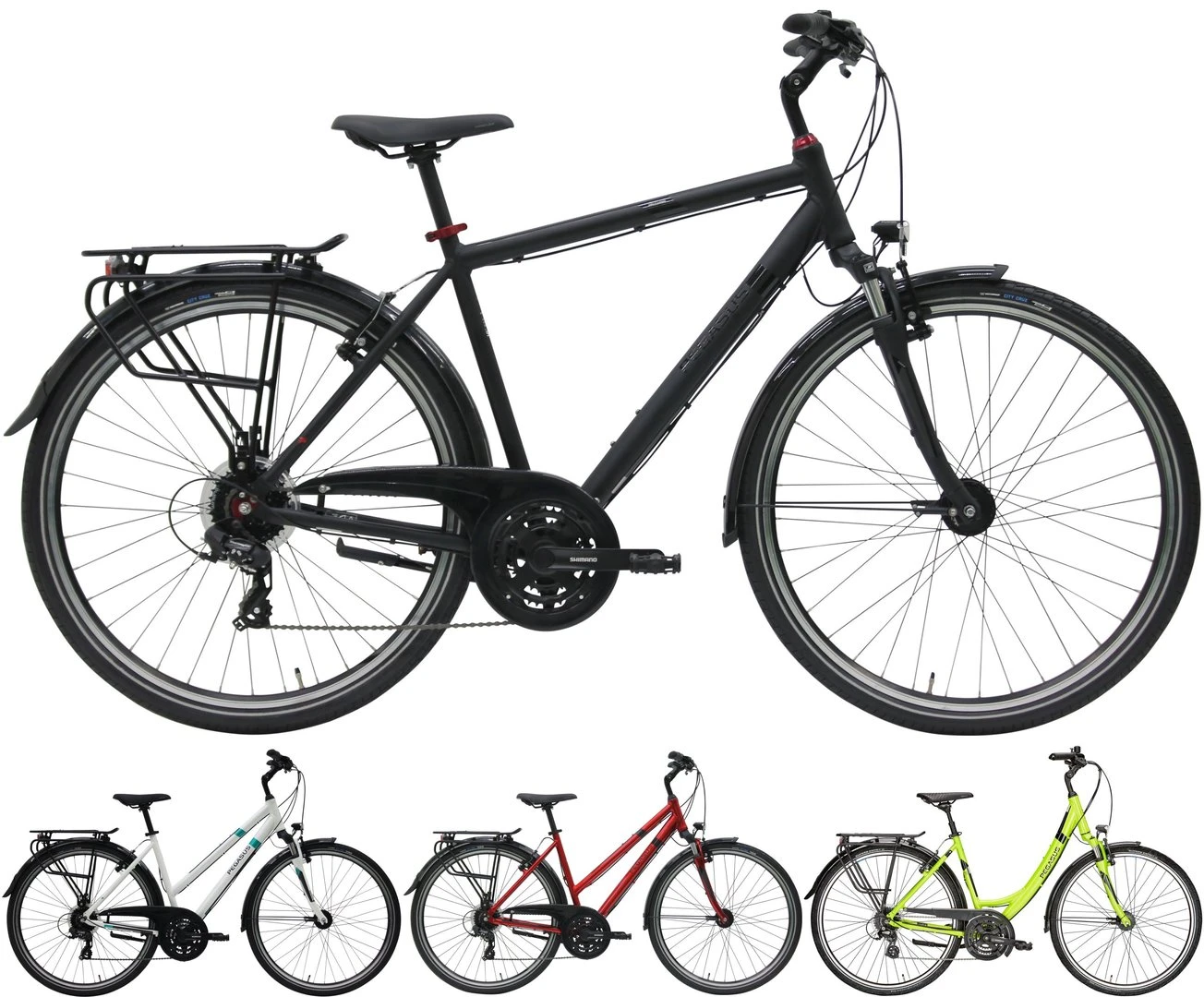 7005 Alu-Rahmen, Suntour CR-7V Federgabel, Altus Schaltwerk und Schalthebel, Tourney Umwerfer und Kurbeln (48 Zähne), Formula Kassettennabe, V-Bremsen, DBM-2 Hohlkammer-Felgen, Vee Tire Santa Cruz Reifen (44-622), verstellbarer Vorbau, 2-Bolt Sattelstütze, Nabendynamo, 30 Lux LED Sensor-Lampe, Standlicht vorne und hinten