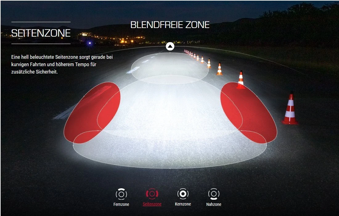 Mit einem homogenen Lichtbild bietet die AURA 80 USB optimale Sicht im Fern-, Seiten-, Kern- und Nahbereich, ohne dabei andere Verkehrsteilnehmer zu blenden. Damit gewährleistet sie höchste Sicherheit im Straßenverkehr.