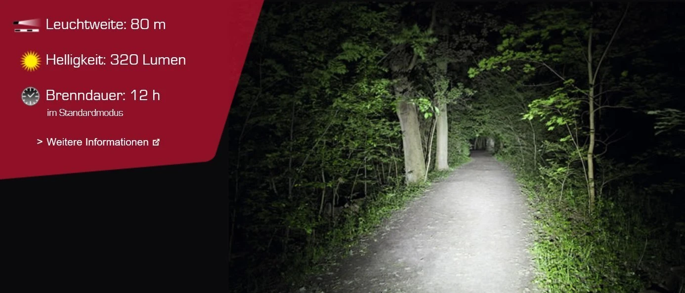 - Extralange Brenndauer bei gleichbleibender Helligkeit (4 h Power-, 6 h Standard-, 12 h Energiesparmodus mit IION)